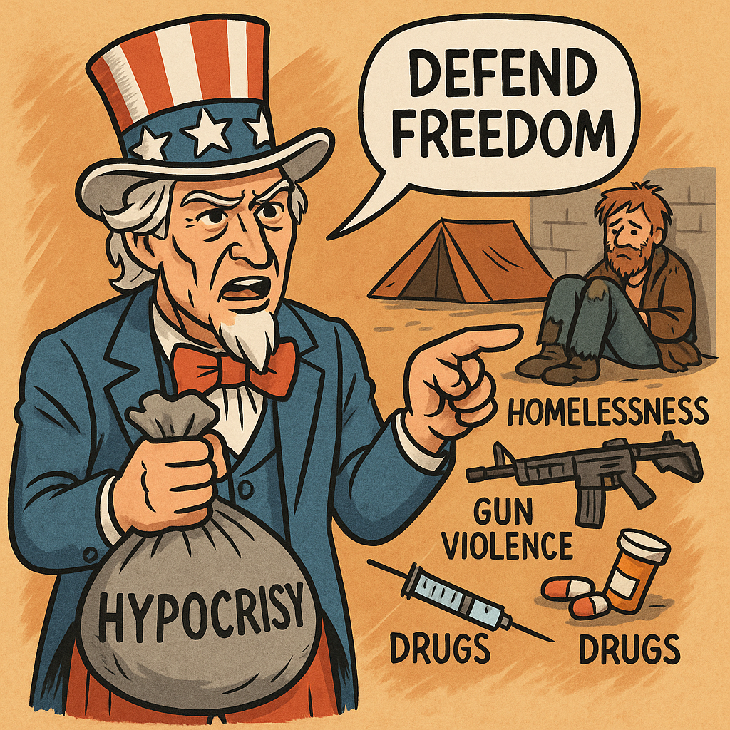 Estados Unidos se vende como el guardián del mundo libre. Te impone aranceles, despliega portaaviones, reparte sermones sobre democracia y narcotráfico. Pero cuando miramos hacia adentro, no vemos la tierra de la libertad ni del American dream: vemos un país roto, sangrando y al borde de un colapso moral.